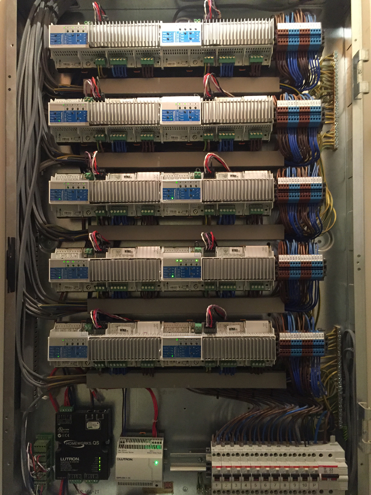 Luxury rewire project with full integration of Lutron HomeWorks lighting control, enhancing both aesthetics and usability.